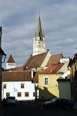 1999年12月、シギショアラからシビウへ向う途中に立ち寄った。ここは運転手のジョージが暮らした町でよく知っていることと知り合いに顔をみせたいというので立ち寄った。 街の中心に近い、マーケットにの隣に車を止めそこから歩いた。大きな街ではないので直ぐに歩けてしまうのだが、街の中心には広場があり、その近くに尖塔を持った教会が青空に突き出ていた。 |