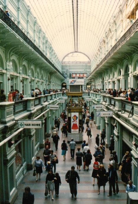 買い物のシステムがここソ連では異なっていた。買いたい物をレジに持っていっても買えないです。 先ず、買いたい品物を告げ金額を書いた紙をもらい、それを持ってレジへ行き、そこでその金額を支払い、レシートをもらう。若しくは支払いのスタンプを押してもらう。それをもって最初のところへ戻り品物を受け取る。 旧共産圏ではこのやり方が多かった。買う品物を告げるためと支払いのために2度ならばなければならない。これは混雑していると非情に時間がかかる。 |