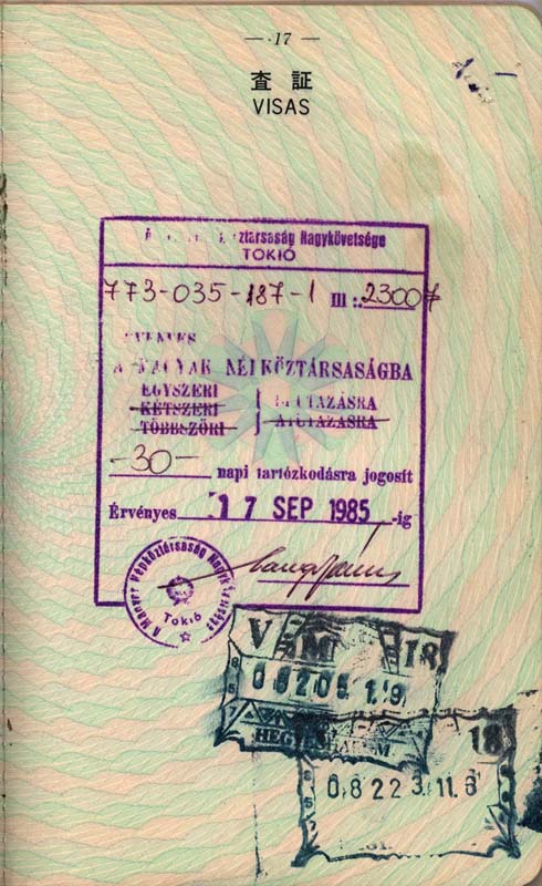 東京・代官山(当時)にあったハンガリー大使館で取得したビザ。