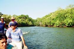 出発の様子(ペダシの港、マングローブ林のなか)これから何が起こるのか?何の不安もなくクリークの港を出港した面々。