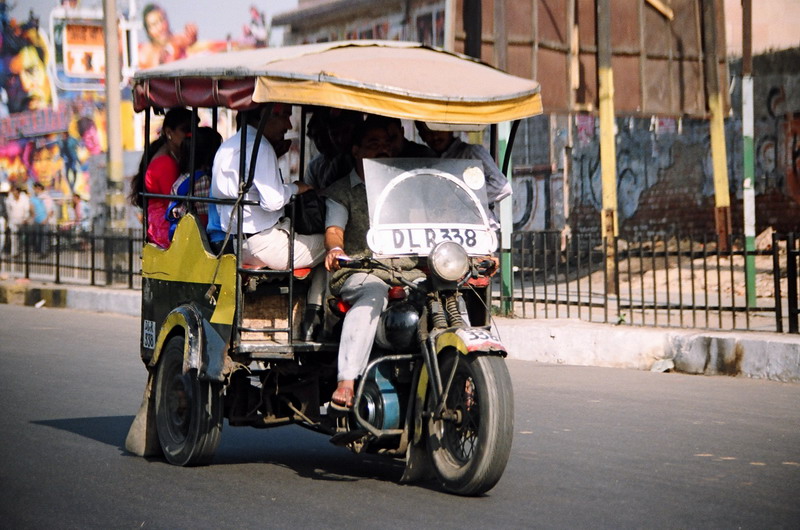 | 二輪車を改造した三輪タクシー | 混沌としたストリート、リクシャー走る |