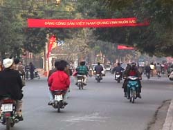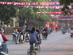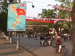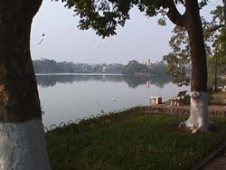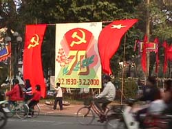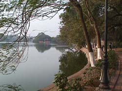 丁度この年は、ベトナム共産党創立70周年にあたり、街の中には垂れ幕があちこちに掲げられた。 ホアンキエム湖周辺(Feb03,2000) |