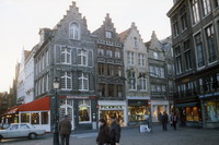 Markt 市の中心となる広場(グランプラス)。広場に面しているギルド・ホールとその上にそびえる鐘楼は13世紀に建設されたもので、その後拡張されています。鐘 楼は高さ83メートル。366段の階段を登る途中で、総重量27トンというカリヨン(47個の鐘)や、自動演奏装置を見ることができます。15分ごとに美 しい音色を響かせている。 広場の東側の建物は、西フランドル州庁舎。広場中心の銅像は14世紀のフランスの圧制下での市民蜂起の英雄ヤン・ブレーデルと ピーテル・デ・コーニング。