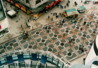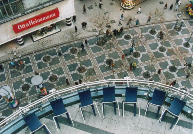 フライトのことを考えて中央駅の近くにホテルを取った。そこから旧市街方向へペデストリアンを歩き始めた。旧市街の近く、新旧織り交ざった地区になり、先へ進むとモダンなデザインの商業ビルが目に止まり中を覗いた。屋上からは街の様子が見渡せ、また、舗装の模様が鮮明に俯瞰できた。
