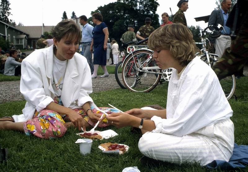 当時、フィンランドでは徴兵制が布かれており(現在は不明)Marya-Lusaの弟が兵役中だった。滞在中、家族を軍事演習に招待する催しがあり、私も同伴させてもらった。写真の下2枚がそのときのもの、演習が終わって軍事用食料でランチを取っているところ。