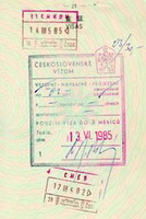上は査証と出入国スタンプの写し。1985年6月13日に東京広尾にあるチェコスロバキア大使館で取得し同年8月14日に入国、8月17日に出国している。大使館へは申請、受け取りと2回足を運んだ。そのときブラスチラバへ行くという学生がいた。ゼミの関係といっていたような記憶だがそのころ私はその都市の名前以外には何も知らなかった。この出入国スタンプからもわかるようにプラハには僅か3泊4日であったようだ。