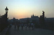 黄昏時、カレル橋のたもとで陽が暮れていくのを眺めた。プラハ城の尖塔ががシルエットとなっていく時間の流れがとてもゆったりと感じられた。