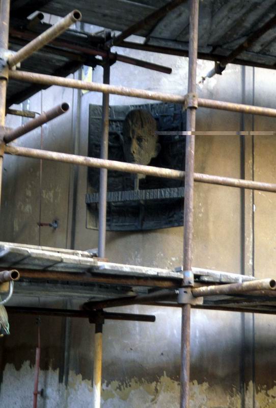以前カフカの作品を読んだことがあり、カフカが執筆活動をしていた住居を訪ねた。それはプラハ城の横にある”黄金の小路”という路地にあり小さな家が建ち並んでいる一角だった。壁にカフカのレリーフを見つけ写真を撮ったが建物は足場が組まれ工事中であった。
