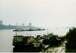 - 方向を変え、ドナウ河岸にあるレストランへ向かう。フリーゾーンを抜けメンテナンスの悪い道路を、廃墟に近い工場などを横目に見ながら進むと、ドナウ河がひらけてくる。