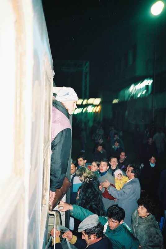 国境駅でのコントラスト、ハンガリー側は乗降客少なく今までと変らなかったが、ユーゴスラビア側での駅は戦時下の国境貿易や買出しに来た人たちで溢れていた。ハンガリー側から一緒だったコンパートメントの乗客が、たくさん人が乗ってくるから荷物などを気をつけるように注意してくれた。