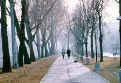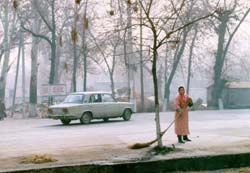 宿泊したホテルは真新しいタシケントでは最高級ホテル。その前の小路。