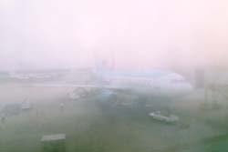 早朝のバンコック、ドンムアン空港 一番奥がウズベク航空機 朝霧の中のA300ウズベキスタン航空機(写真の質が悪いので差し替え予定)
